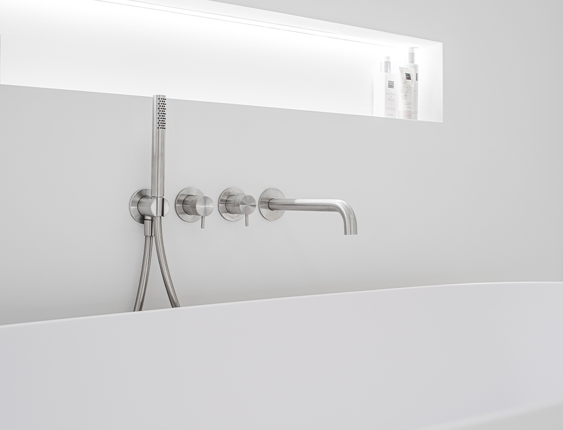 Een bad inbouwset is een volledig geïntegreerd systeem voor baden, waarbij onderdelen zoals de kraan, handdouche, en wateruitloop in de muur worden ingebouwd. Dit zorgt voor een strakke, minimalistische uitstraling en biedt meer ruimte rondom het bad.