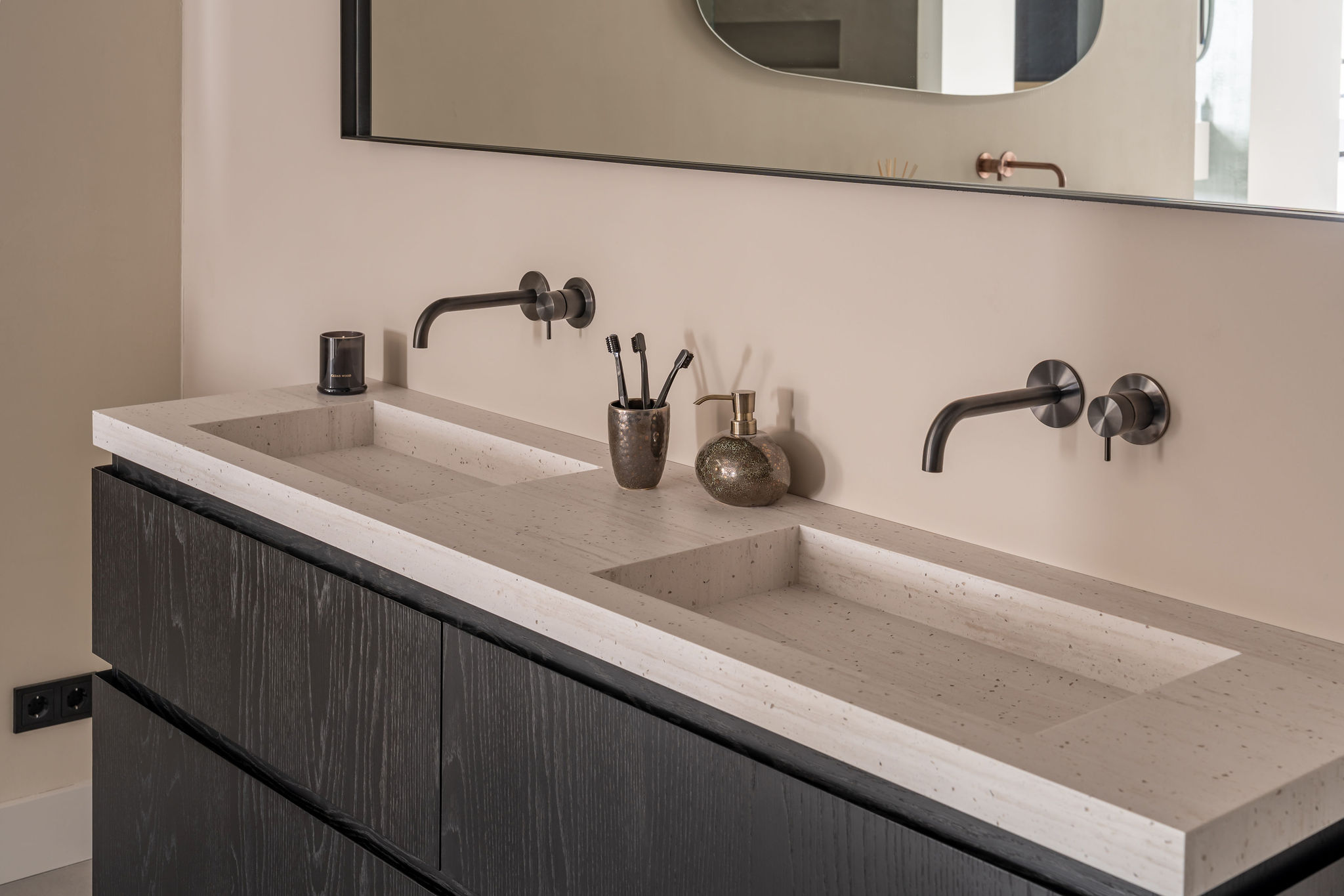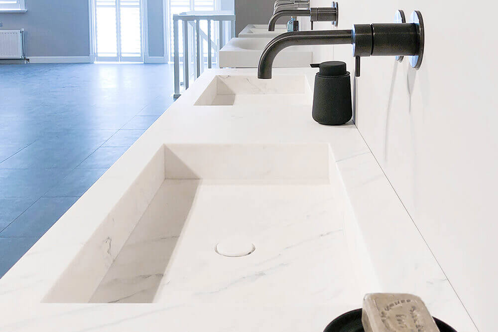 Zo geniet je van de elegante uitstraling van marmer of travertin, met het gebruiksgemak en de hygiëne van Solid Surface.