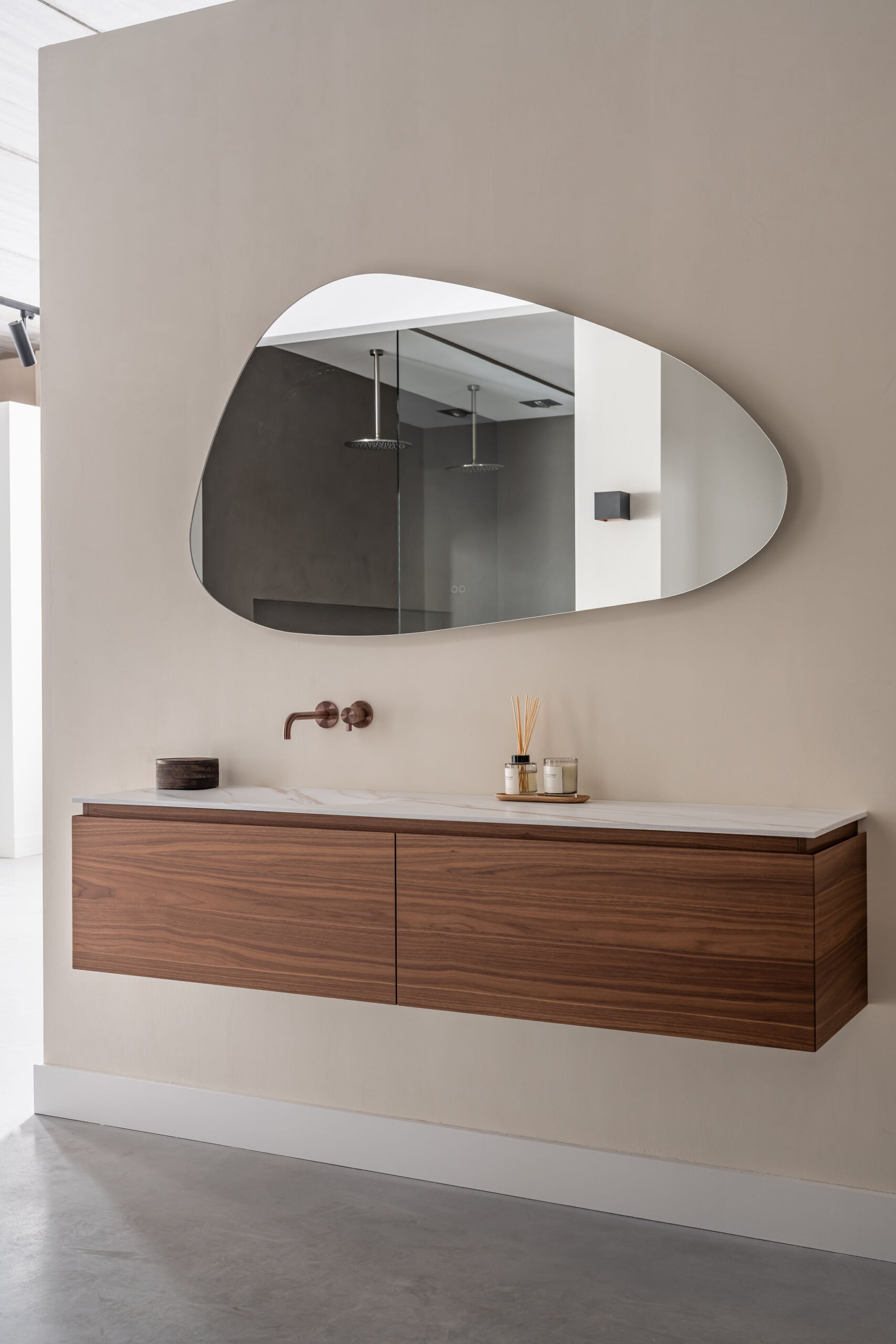 Natuurlijk naast standaardformaten is de Texel ook volledig op maat leverbaar, passend bij jouw badkamermeubel op maat.